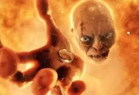 Orcs from the Misty Mountains, elves deformed in the black pits of Mordor to do Sauron’s bidding, stationed there by the Dark Lord, slew Isildur with poisoned arrows, though he’d swum across the river Anduin to escape the ambush trapping him and his men. Although the ring, with the power to confer invisibility, had helped, it slipped off his finger, exposing his position, and it was later found by Gollum, who called it his ‘precious’. When found again by another ‘halfling’, the hobbit, Bilbo Baggins, it was much to Gollum’s chagrin, ‘Thief! Baggins! We hates it, we hates it, we hates it forever!’ Gollum, who played a ‘riddle game’ with the victims he killed and ate, which he didn’t expect to lose, hadn’t understood Bilbo’s, ‘What have I got in my pocket?’ Putting it on, Bilbo escaped invisibly.