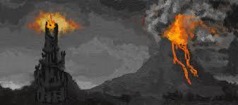 Sauron, looking to find the ring for its enslaving properties, waged war in Middle Earth, ‘One ring to rule them all, one ring to find them, one ring to bring them all, and in the darkness bind them.’ It’s determined in The Fellowship of The Ring, which is the first book in the trilogy, The Lord of the Rings (1953), that the ring be thrown into the fire of Orodruin, a volcano, known colloquially as ‘Mt. Doom’, which is what Bilbo’s heir and nephew, Frodo embarks upon in the second book of the trilogy, The Two Towers, while Gollum, still frantically trying to wrest the ring from the hobbit’s grasp, falls into ‘the crack of Doom’, along with the ring. With its unmaking, the power of Sauron is broken, and his realm in Mordor, including the tower of Barad-dûr, Ephel Duath, ‘The Fence of Shadow’, Morannon, ‘The Black Gate’, Carchost and Narchost, ‘The Towers of the Teeth’, the city of Minas Morgul, once built by the men of Gondor as Minas Ithil, the pass of Cirith Ungol, and that of Terech Ungol, where the giant spider, Shelob, dwelt, collapse into ruin. The final book of the trilogy, The Return of the King, relates how the leader of the fellowship, ‘the man of the West’, Aragorn, recognized as the legitimate heir to Isildur, is made king of the men of Westernesse.