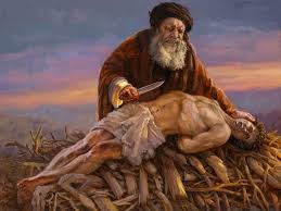Judaism was founded on the basis that Abraham’s God wanted children to be sacrificed. Although Eve’s son, Cain, killed his twin brother, Abel, as Abel’s offering of cooked viands was more pleasing to God than Cain’s fruit, although Abel wasn’t then cooked, whereas Isaac was to be sacrificed on the altar of God, as God wanted the smell of cooked human flesh. Although their mother, Eve, is described as being created by God from Adam’s rib, both Eve and Adam were hermaphrodites, according to Jewish midrash, that is, biblical exegesis, ‘So God created mankind in his own image, in the image of God he created them; male and female he created them.’ (Gen: 1. 27) It’s likely that Eve was the result of self-fertilization. The logical concomitant, as indicated by the title of the early feminist magazine, Spare Rib (1972-93), that humans were food: ribs.